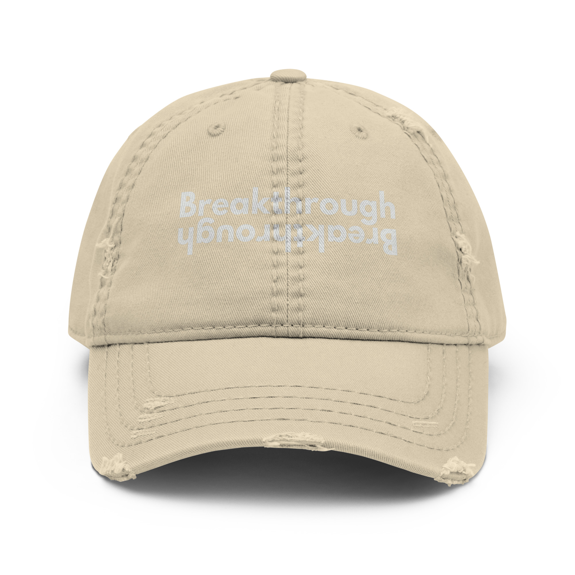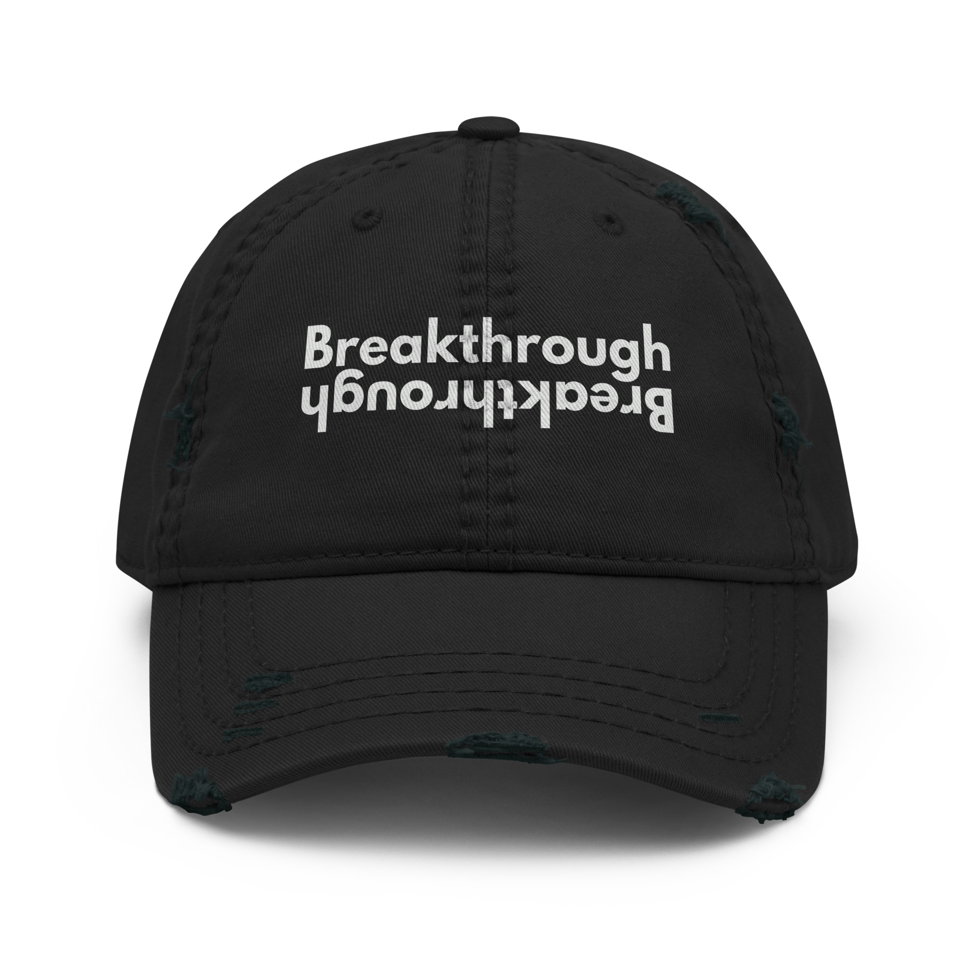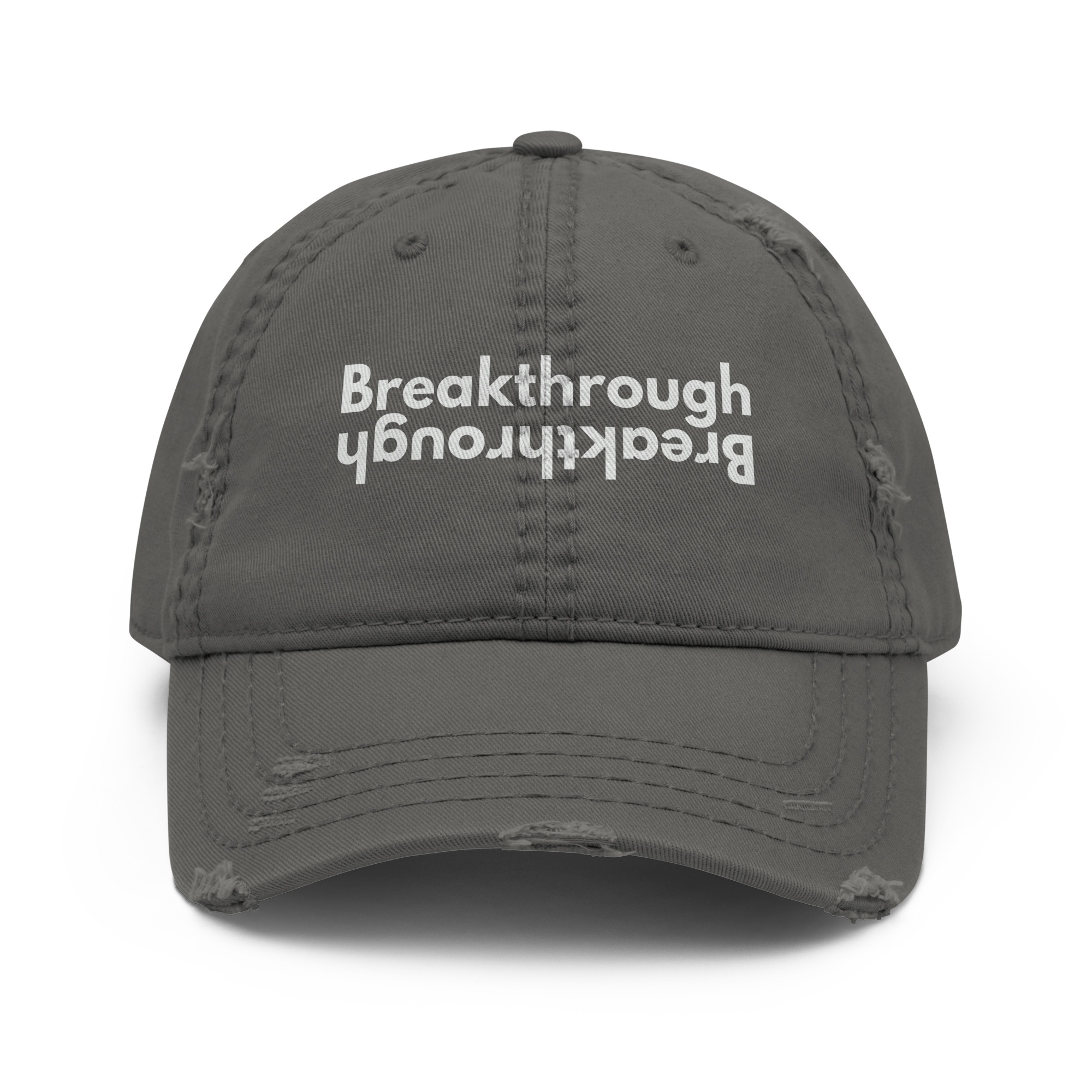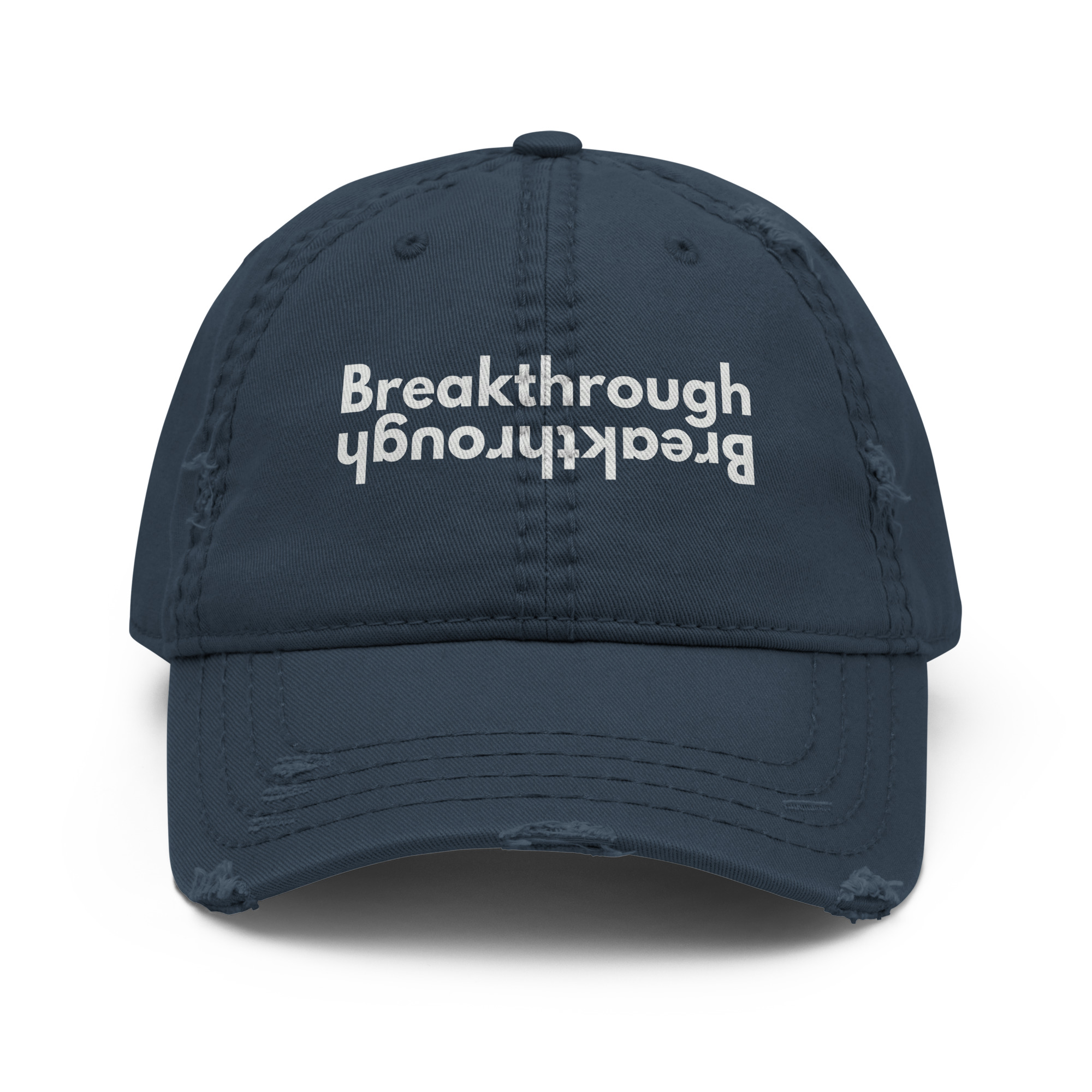 Breakthroughs aren’t always linear—sometimes they flip everything upside down. This distressed dad hat features the word “Breakthrough” twice, mirrored to reflect the messy, non-linear journey of real transformation.