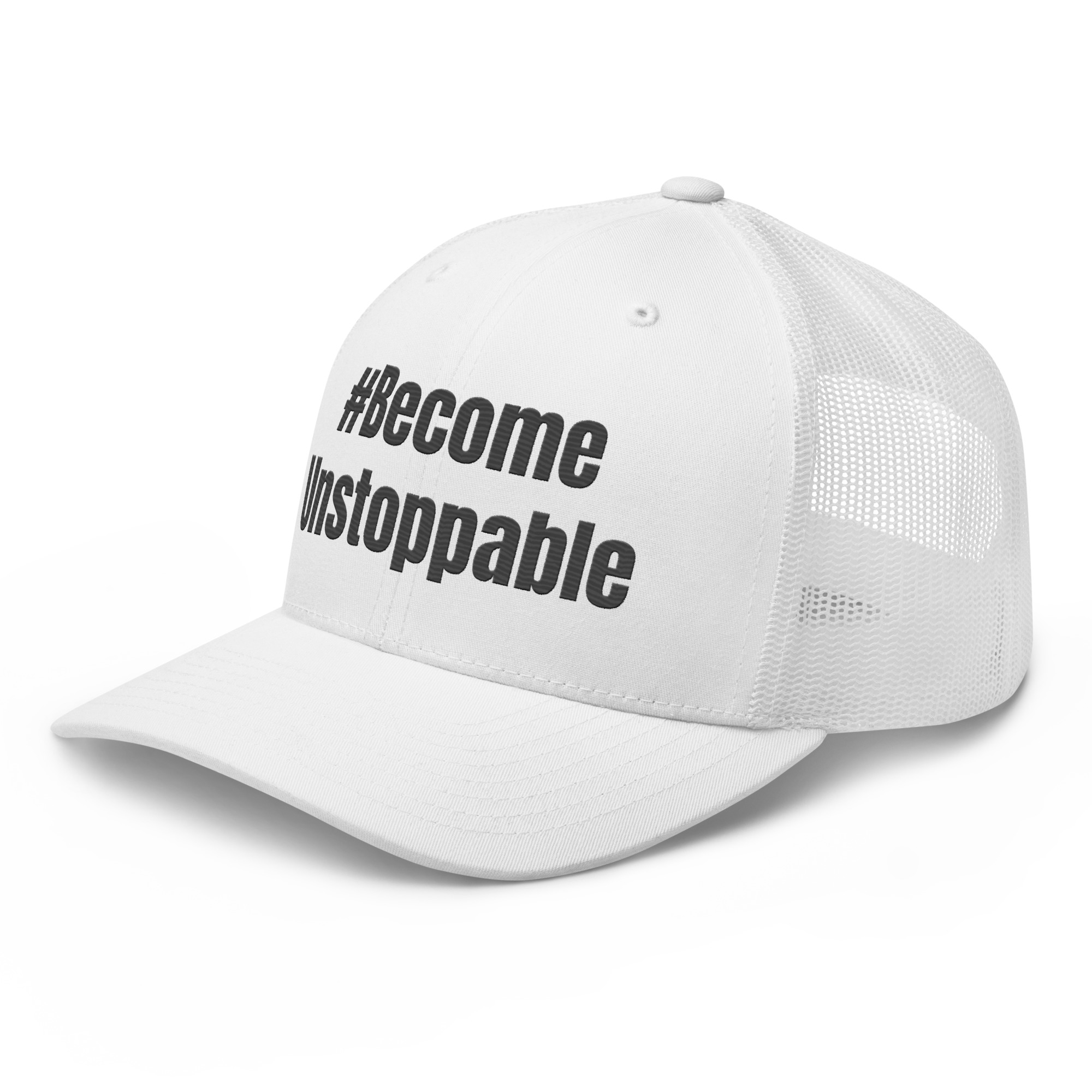 Featuring “#Become” stacked over “Unstoppable” in a bold, eye-catching design, this structured six-panel trucker cap with a mesh back is built for all-day comfort. Classic style meets modern edge—perfect for sunny days, outdoor adventures, or just living your breakthrough journey out loud. Wear your mission.